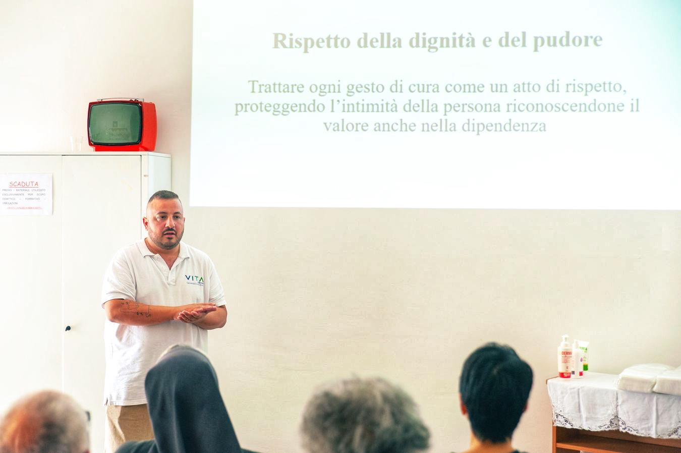 La giornata si è conclusa con l’introduzione alla cura e igiene della persona con Fabio, il nostro Oss di fiducia. Nella giornata del 14 giugno seguirà una dimostrazione pratica.